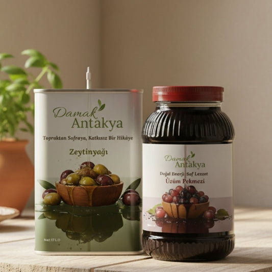 Hatay Başlangıç Paketi: 1 Lt Soğuk Sıkım Zeytinyağı & 1 Lt Odun Ateşi Pekmezi